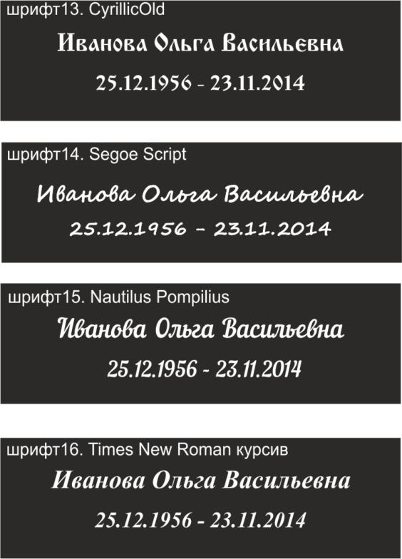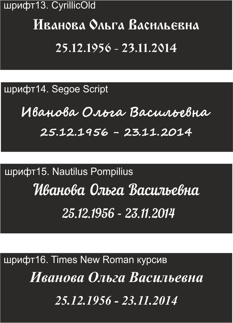 Шрифт на памятник № 13-16